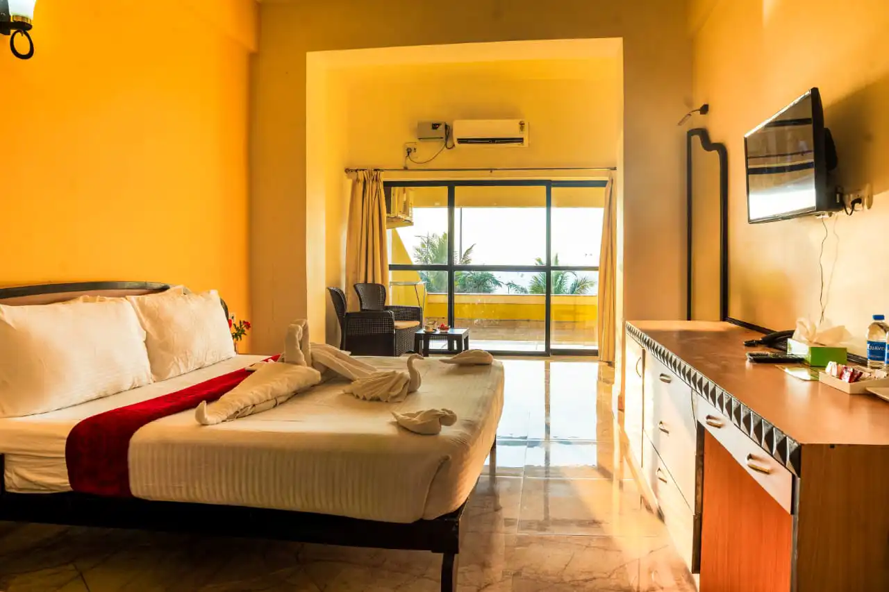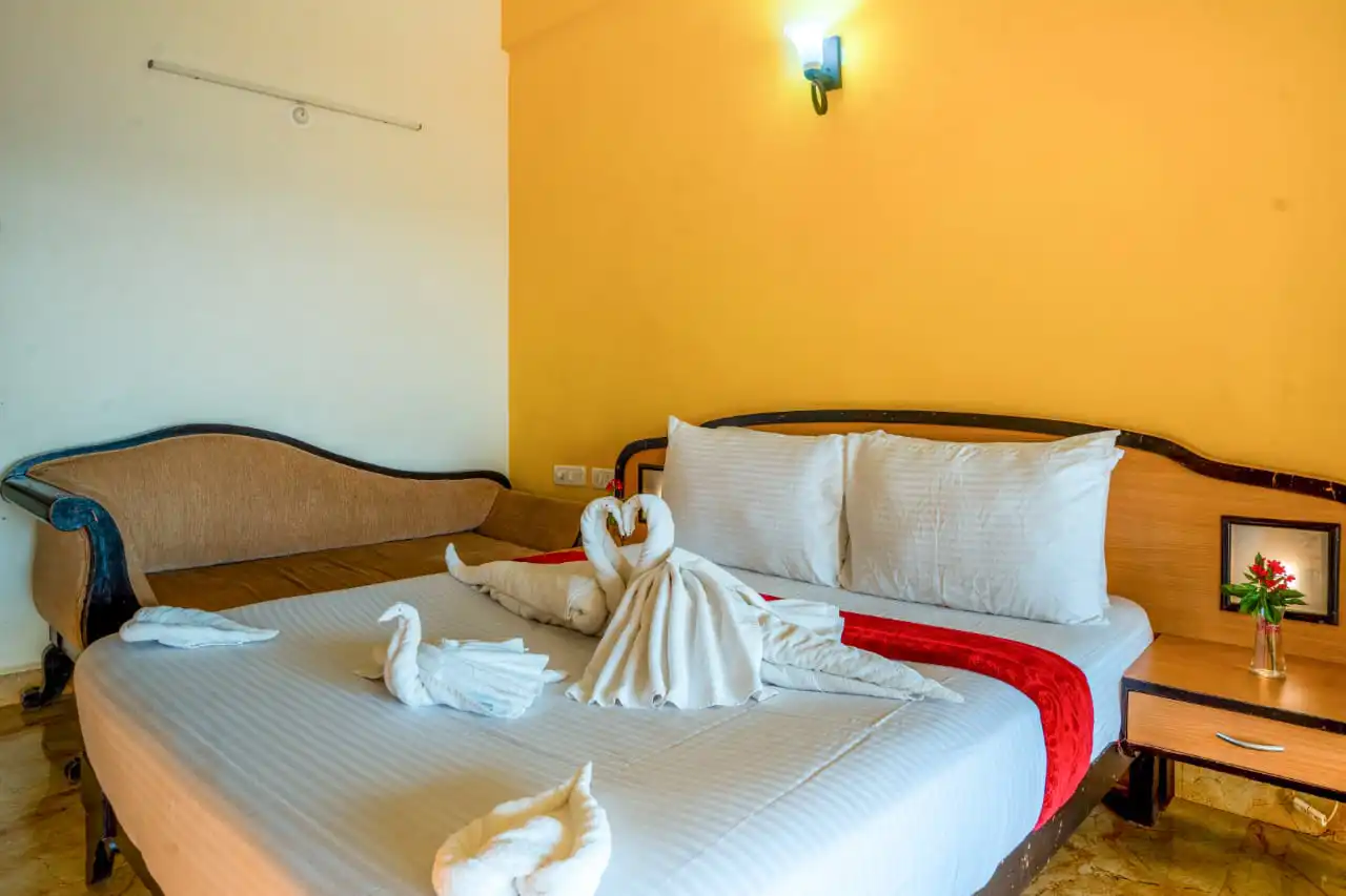 The Calangute Residency, idyllically located along the golden stretches of Calangute beach is a favourite for visitors looking to relax and have some fun. It’s about 16 kms away from Panaji. The property includes cosy, comfortable cottages enveloped between well-manicured sprawling lawns and garden spaces. The rooms are comfortable and spacious and the suites just perfect for an entire family.